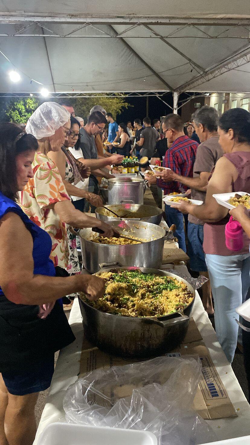 A noite foi marcada por momentos de confraternização com um jantar comunitário e animação ao som da banda Skalla 5, que trouxe música e alegria para os presentes, fortalecendo o caráter festivo do encontro.