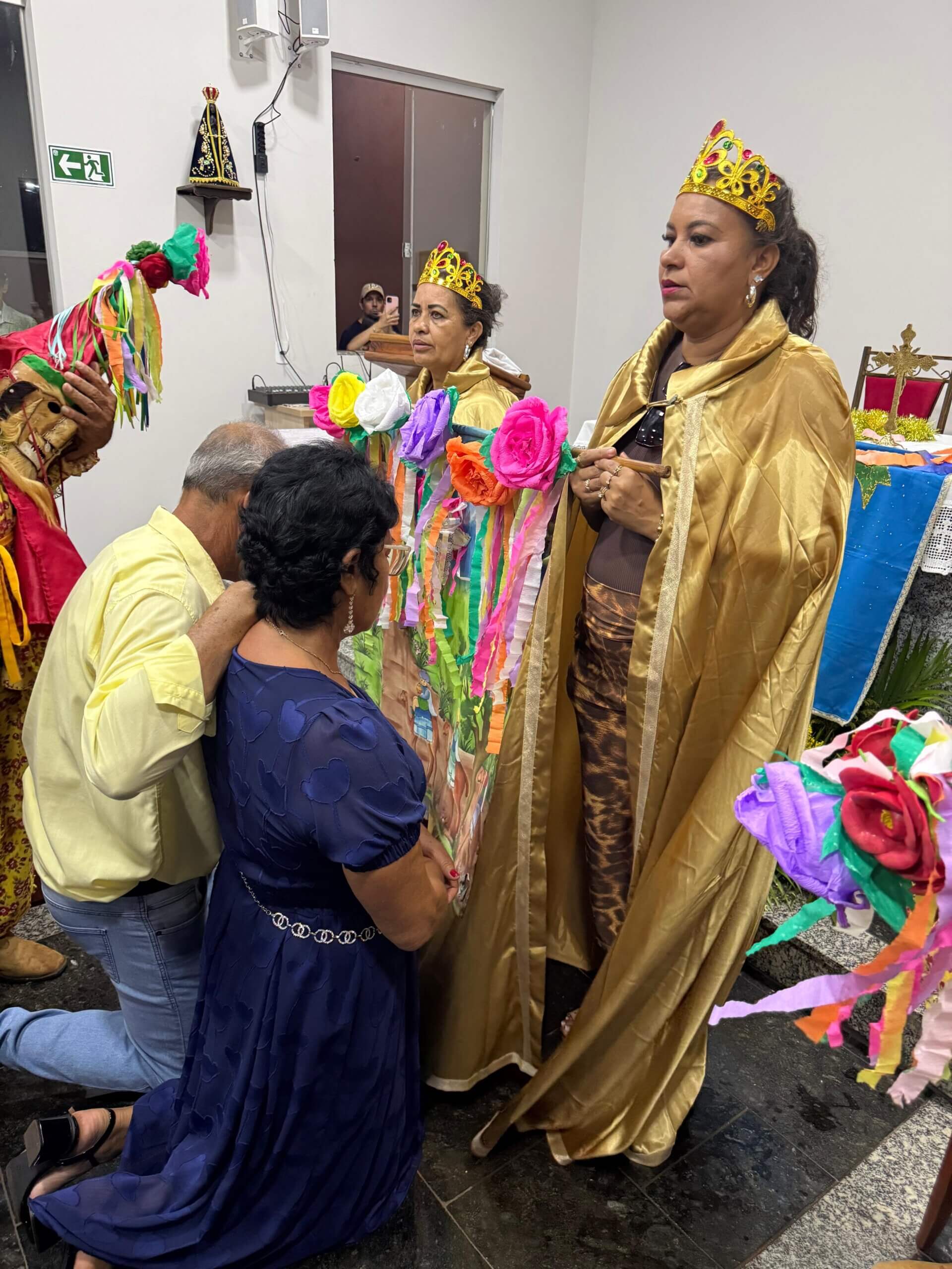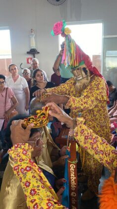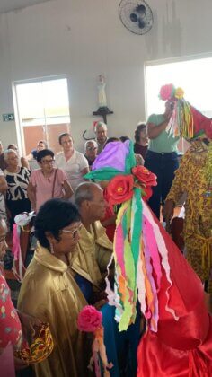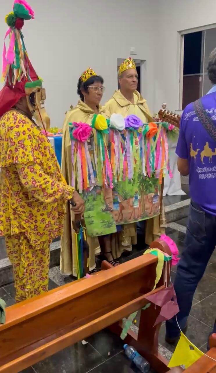 Após a missa, participantes e foliões acompanharam a tradicional chegada dos Reis e o terço, que simbolizam a renovação da fé e a continuidade da manifestação cultural transmitida de geração em geração.