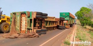 Iturama: Carreta carregada com cana picada tomba próximo ao trevo do...